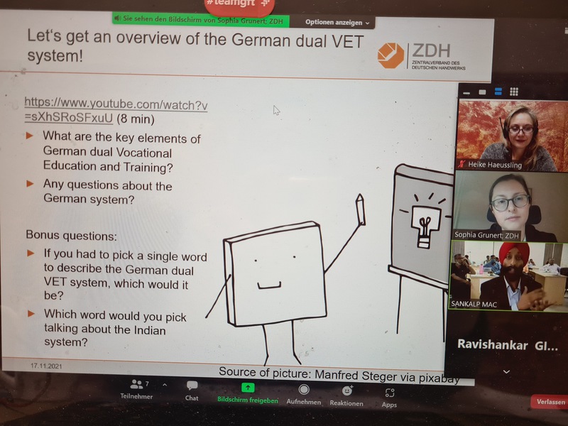 Im Rahmen des deutsch-indischen Programmes IGVET wurde im November 2021 ein 5-tägiges Onlinetraining für ausgebildete Schweißer durchgeführt. Der Advanced Welding Kurs ist ein insgesamt 3-monatiger Praxiskurs, wovon in der letzten Kurswoche Pädagogik, Ausbildungs-Kompetenzen und Best-Practice Ideen von Deutschland im Fokus standen.