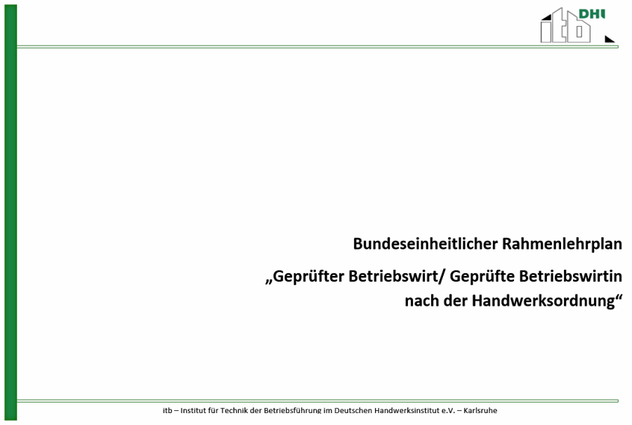 Federführung im Modellversuch: Umsetzung der Verordnung "Geprüfte/r Betriebswirt/in nach der Handwerksordnung" als Gemeinschaftsprojekt vom itb im DHI e. V., der Zentralstelle für Weiterbildung im Handwerk (ZWH) und weiteren Partnern (2009 - 16).
